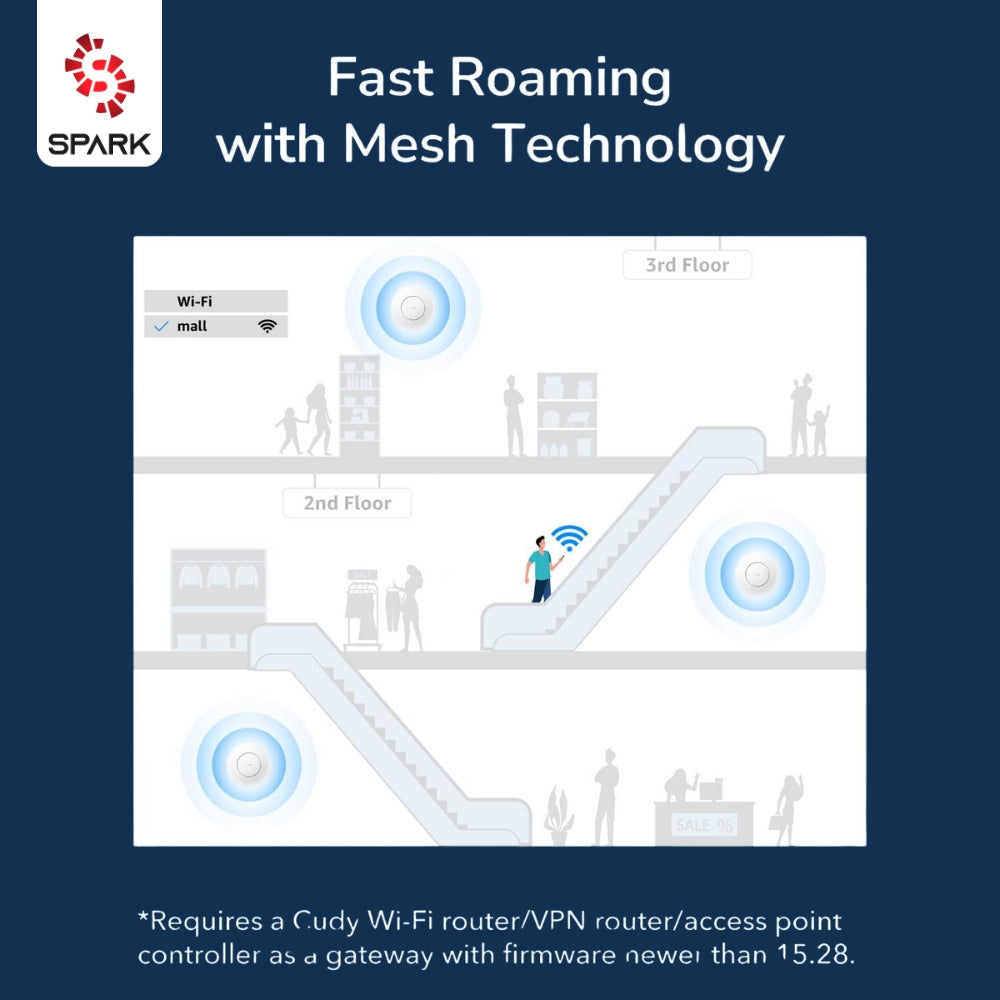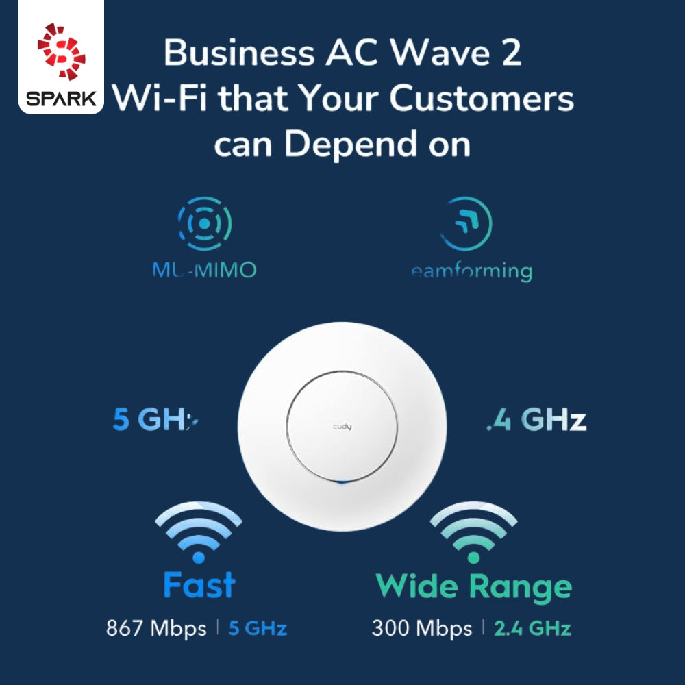 A wall/ceiling-mounted WiFi AP designed for offices and classrooms. 4-Stream Dual-Band Wi-Fi 5
