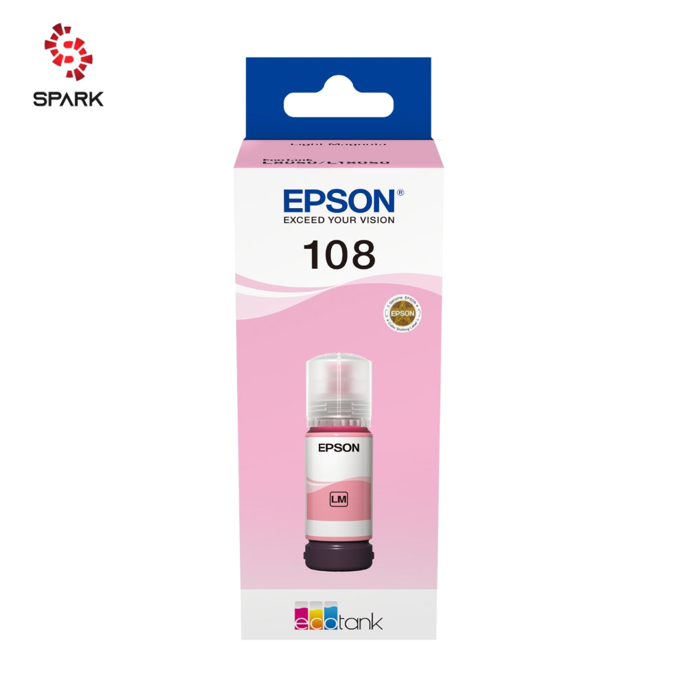 The Epson 108 Light Magenta Ink Bottle provides bright, accurate shades and enhances image depth. Ideal for professional photo and color printing. Specially designed for Epson EcoTank printers such as L805, L810, L850, and L1800, it offers high-quality prints and long-lasting performance. Genuine Epson ink protects printheads and ensures smooth, reliable operation for all your creative and business printing needs.