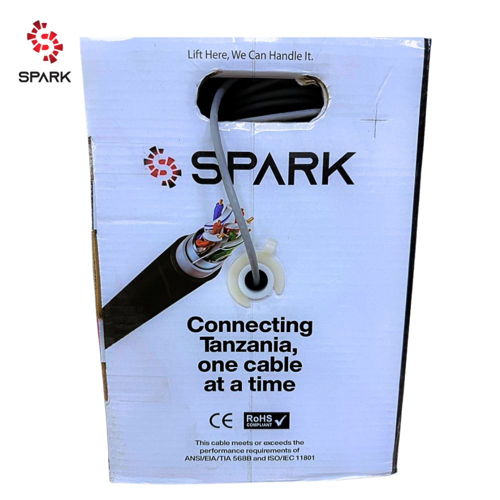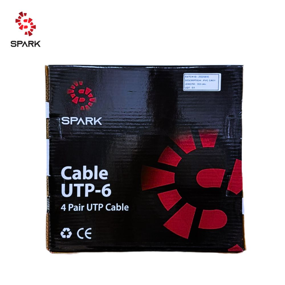 The SPARK Outdoor Cable CAT6 23AWG Pure Copper Black 305m roll provides reliable, high-speed data transmission for outdoor networking installations. Its 23AWG pure copper conductors ensure minimal signal loss and interference, supporting up to 1Gbps speeds. Designed with a weather-resistant black jacket, it protects against UV, moisture, and temperature fluctuations, making it ideal for offices, schools, and industrial sites. The 305-meter roll allows long-distance connectivity while maintaining stable performance in harsh outdoor conditions.