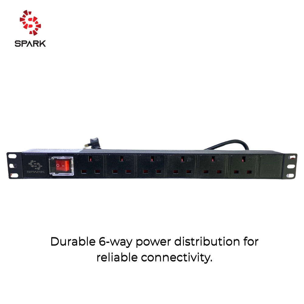The SPARK PDU Socket 6 Way Rack Mounted provides reliable and efficient power distribution for multiple devices within server racks or network cabinets. Built for durability and safety, it ensures stable power delivery, ideal for IT rooms, offices, and professional network setups.
