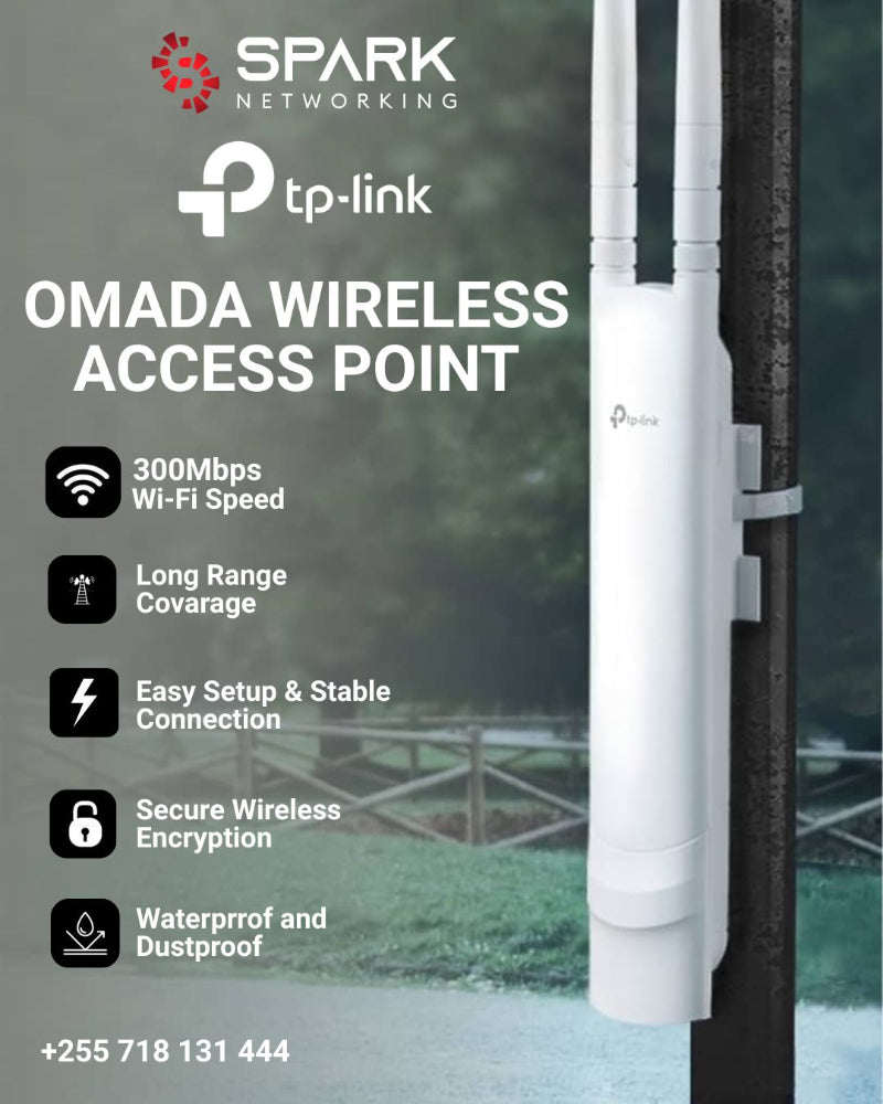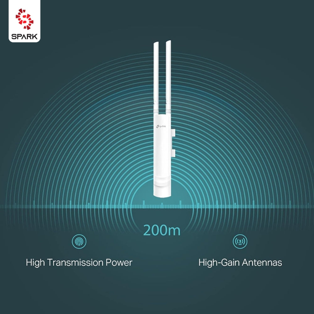 The TP-Link EAP110-Outdoor AC1350 Access Point delivers fast 300Mbps Wi-Fi with 2x2 MIMO, long-range coverage using dual high-gain antennas, and weatherproof housing. Supports Passive PoE for flexible installation and easy management with Auranet Controller software.